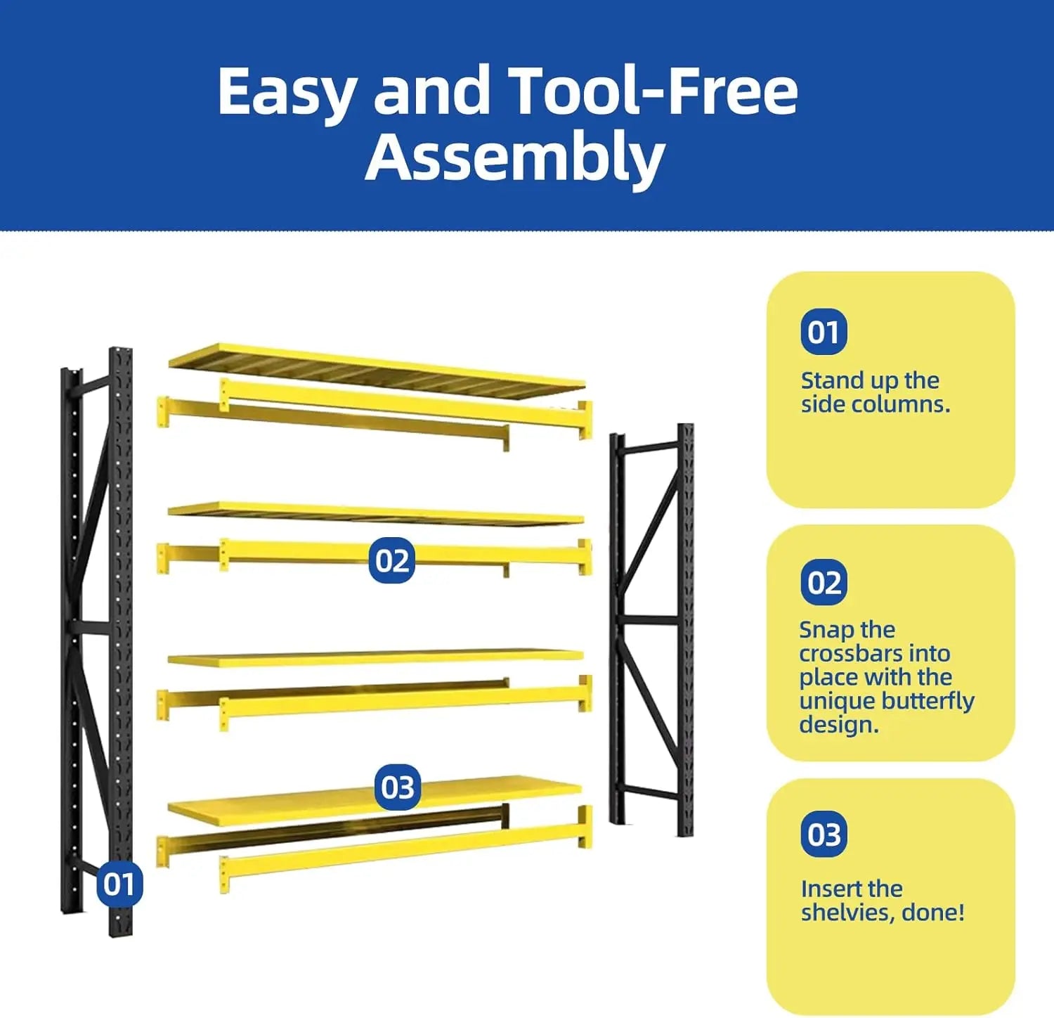 79"W Heavy Duty Garage Shelving. 4400Lbs Garage Storage, 4-Tier, Adjustable Metal Shelving Units And Storage, Industrial