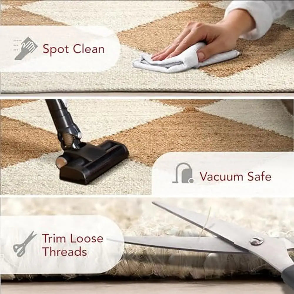 8x10-Boho Diamond Jute Area Rug, Handmade, Farmhouse Neutral, Living Room,Dining Room, Kitchen Rug